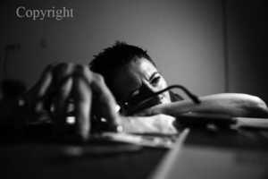 (2021 - 2026)"Het licht laten zien op plekken waar het normaal altijd donker blijft". Confronterende en verhalende foto's over verslaafde mensen ergens in een oude kelder of elders achteraf. Naakt of half naakt helemaal teruggetrokken op een plek waar ze kunnen gebruiken. Vervagen van lichamelijke en geestelijke pijnen. Formaat 60 x 90. Werk opgeplakt op Dibond en aan voorzijde voorzien van plexiglas.